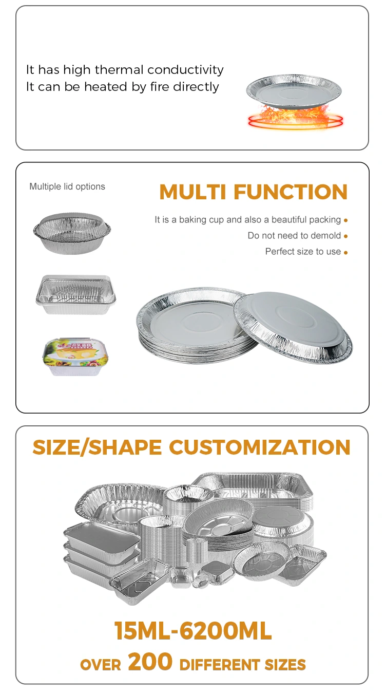 خاندانی اجتماعات میں خاندانی اجتماعات ، 10 انچ پیزا پین سلور ایلومینیم ورق کنٹینر بلا شبہ ایک ناگزیر مددگار ہے۔ اس کا استعمال روسٹ چکن اور اسٹو جیسے اہم برتنوں کو تھامنے کے لئے کیا جاسکتا ہے ، یا بچ جانے والے کھانے کو روکنے کے لئے ڈسپوز ایبل برتنوں کے طور پر ، جو کھانے کے بعد صفائی کے بوجھ کو کم کرنے کے لئے آسان اور تیز ہے۔ اس کے علاوہ ، اس کے ہلکے وزن اور کیری میں آسان خصوصیات کی وجہ سے ، یہ بیرونی پکنک کے لئے مثالی ہے۔