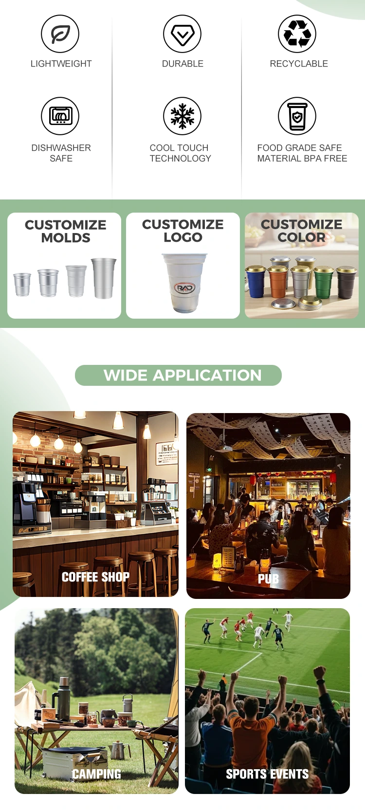 برانڈ لوگو (لوگو) ، پیٹرن ، یا متن کو کپ کے جسم پر اپنی مرضی کے مطابق بنایا جاسکتا ہے۔