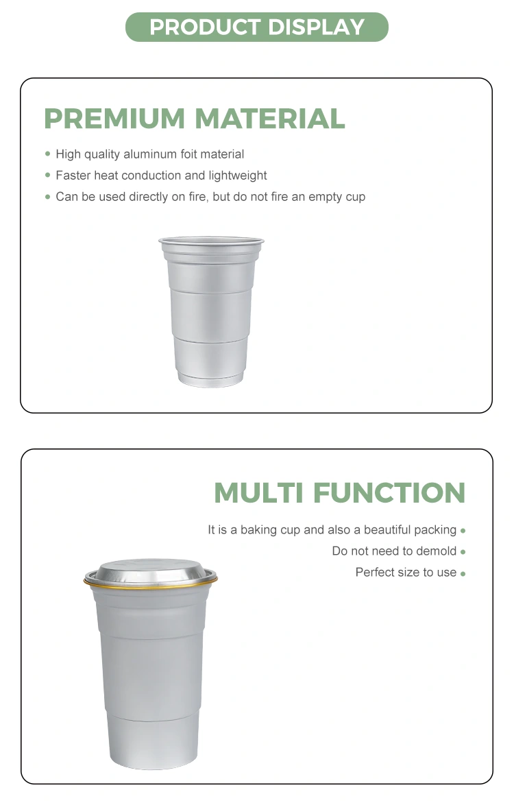 یہ 16 اوز ڈسپوز ایبل کسٹم ایلومینیم ورق بیئر اور کافی ڈرنک کپ ریفریجریشن کے لئے ریفریجریٹر میں براہ راست رکھا جاسکتا ہے۔ ٹھنڈے مشروبات کو ذخیرہ کرتے وقت ، ایلومینیم مواد کی گرمی کی چالکتا سرد درجہ حرارت کو برقرار رکھنے میں مدد کرتی ہے۔