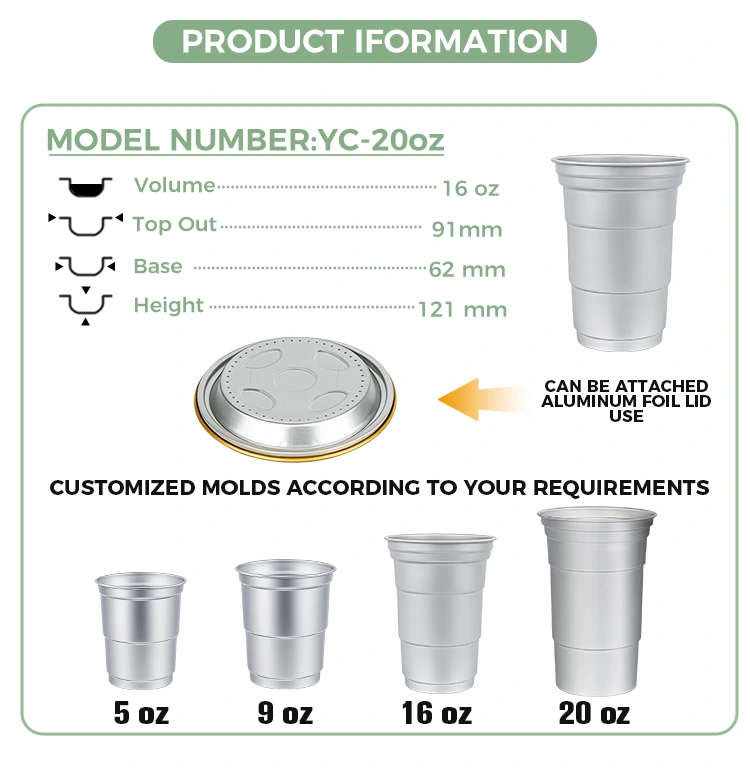 16 اوز ڈسپوز ایبل کسٹم ایلومینیم ورق ڈرنک کپ