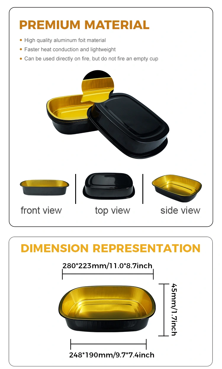 • ڈسپوز ایبل سیاہ سونے کیٹرنگ آئتاکار ایلومینیم ورق کنٹینرڈسپوز ایبل سیاہ سونے کیٹرنگ آئتاکار ایلومینیم ورق کنٹینر