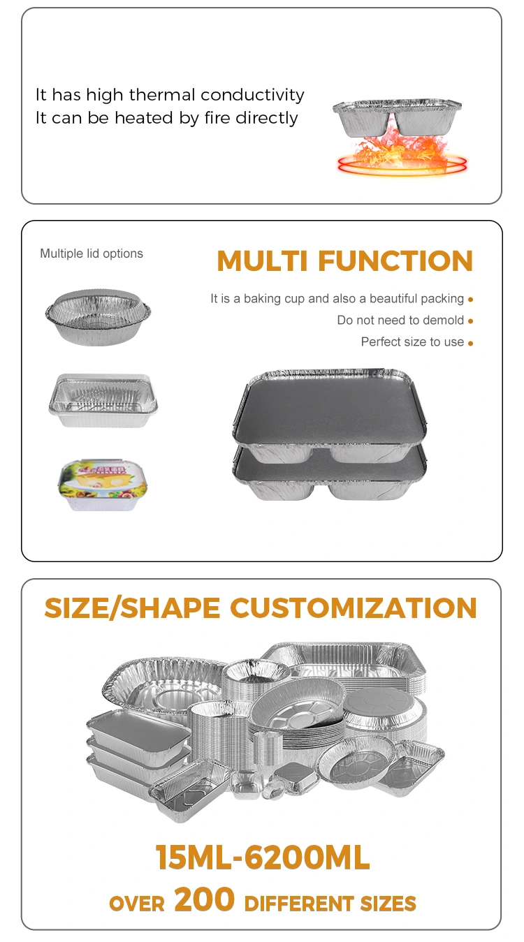 پروڈکٹ کے استعمال کے منظرنامے: جب اسکول ، کاروباری اداروں ، اداروں اور دیگر یونٹ کینٹین اساتذہ ، طلباء یا ملازمین کے لئے پیکیجڈ کھانا مہیا کرتے ہیں تو ، خصوصی شکل والے چاندی کے ورق کنٹینر ایک اچھ choice ے انتخاب ہوتے ہیں۔ یہ جلدی سے مختلف قسم کے کھانے کو پیک کرسکتا ہے اور لوگوں کو کیفے ٹیریا سے باہر لے جانا آسان بنا سکتا ہے۔