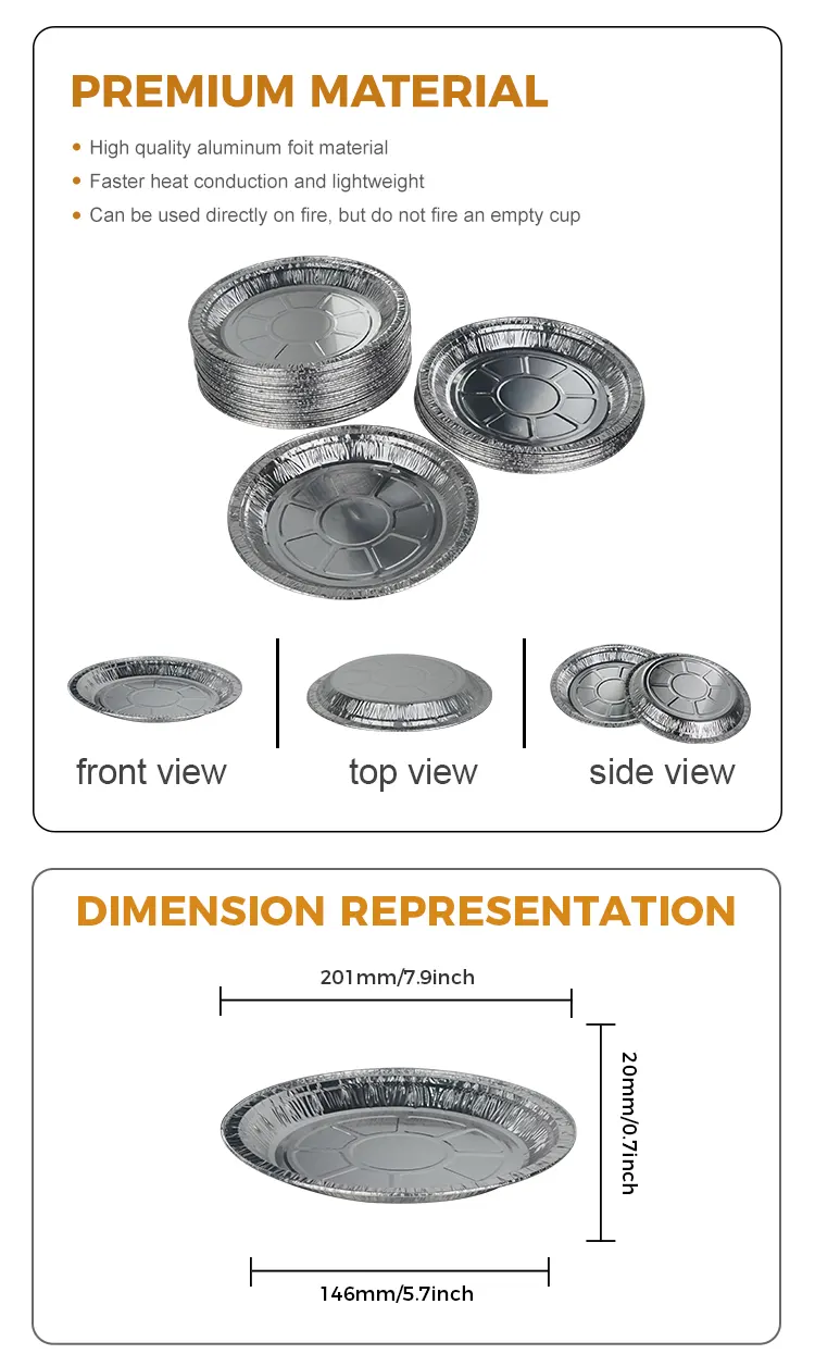 یونچو ایلومینیم فوائل ڈسپوزایبل ڈسک ایئر فریئر سلور ایلومینیم فوائل کنٹینر حفظان صحت اور ماحول دوست دونوں ہے۔ یہ گاڑھا اور سنکنرن مزاحم مواد سے بنا ہے جو آسانی سے خراب نہیں ہوتے ہیں اور کھانے کے ساتھ براہ راست رابطے میں ہوسکتے ہیں۔ یہ اعلی درجہ حرارت سے خوفزدہ نہیں ہے، جلا نہیں ہے، جلا نہیں ہے، اور پھینکنے کے لئے آسان نہیں ہے. یہ 250 ° C تک اعلی درجہ حرارت کو برداشت کر سکتا ہے اور کھانا پکانے کے مختلف طریقوں جیسے کہ اعلی درجہ حرارت پر بیکنگ، اوون اور باربی کیو کے لیے موزوں ہے، اس لیے پریشان ہونے کی ضرورت نہیں ہے۔ مختلف سائز کی متنوع بیکنگ کی ضروریات کو پورا کرنے کے لیے متعدد تصریحات دستیاب ہیں، جو آپ کو کھانے کی پیداوار کی مختلف ضروریات کو آسانی سے پورا کرنے کی اجازت دیتی ہیں۔