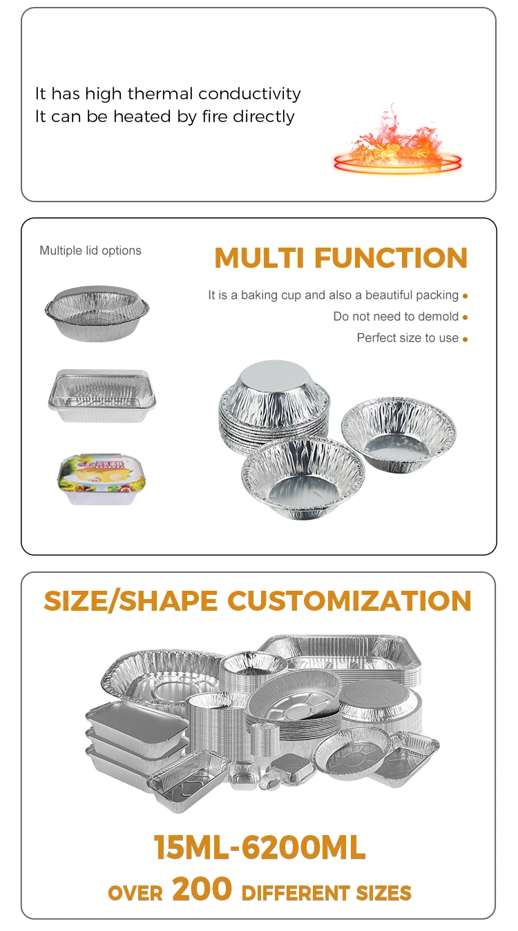 تجارتی کاروباری منظرنامے: ویسٹرن بیکریوں ، میٹھی کی دکانیں ، اور فاسٹ فوڈ چین اسٹورز یونچو ایلومینیم ورق انڈے ٹارٹ ٹرے کا استعمال کرتے ہیں ، جو بیکنگ اور فروخت کو مربوط کرنے کے لئے براہ راست استعمال ہوسکتے ہیں ، جس سے پیکیجنگ کے تبادلوں کی ضرورت کو ختم کیا جاسکتا ہے اور آپریشنل کارکردگی کو بہتر بنانا ہے۔ آئٹم۔ ایک ڑککن والا ڈیزائن ٹیک آؤٹ بزنس کے لئے زیادہ موزوں ہے ، جو اسٹوریج اور تقسیم میں سہولت فراہم کرتا ہے ، میٹھیوں کو پھیلنے سے روکتا ہے ، اور ذائقہ اور معیار کو یقینی بناتا ہے۔