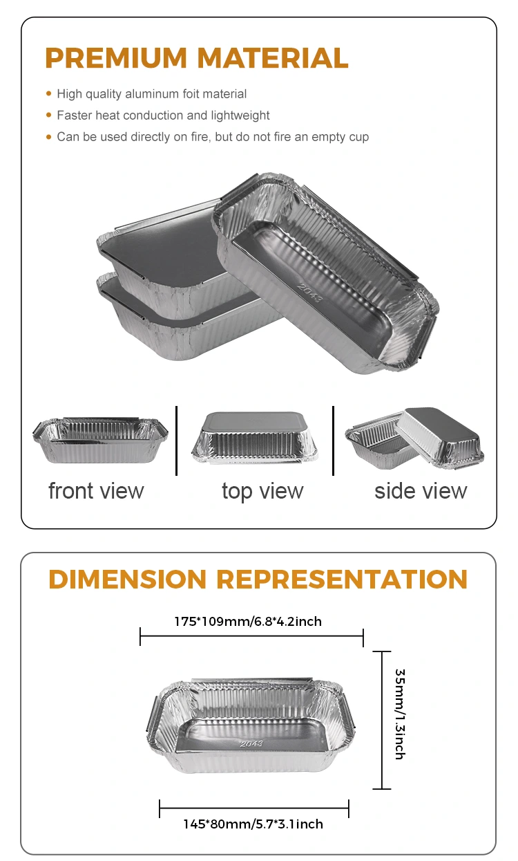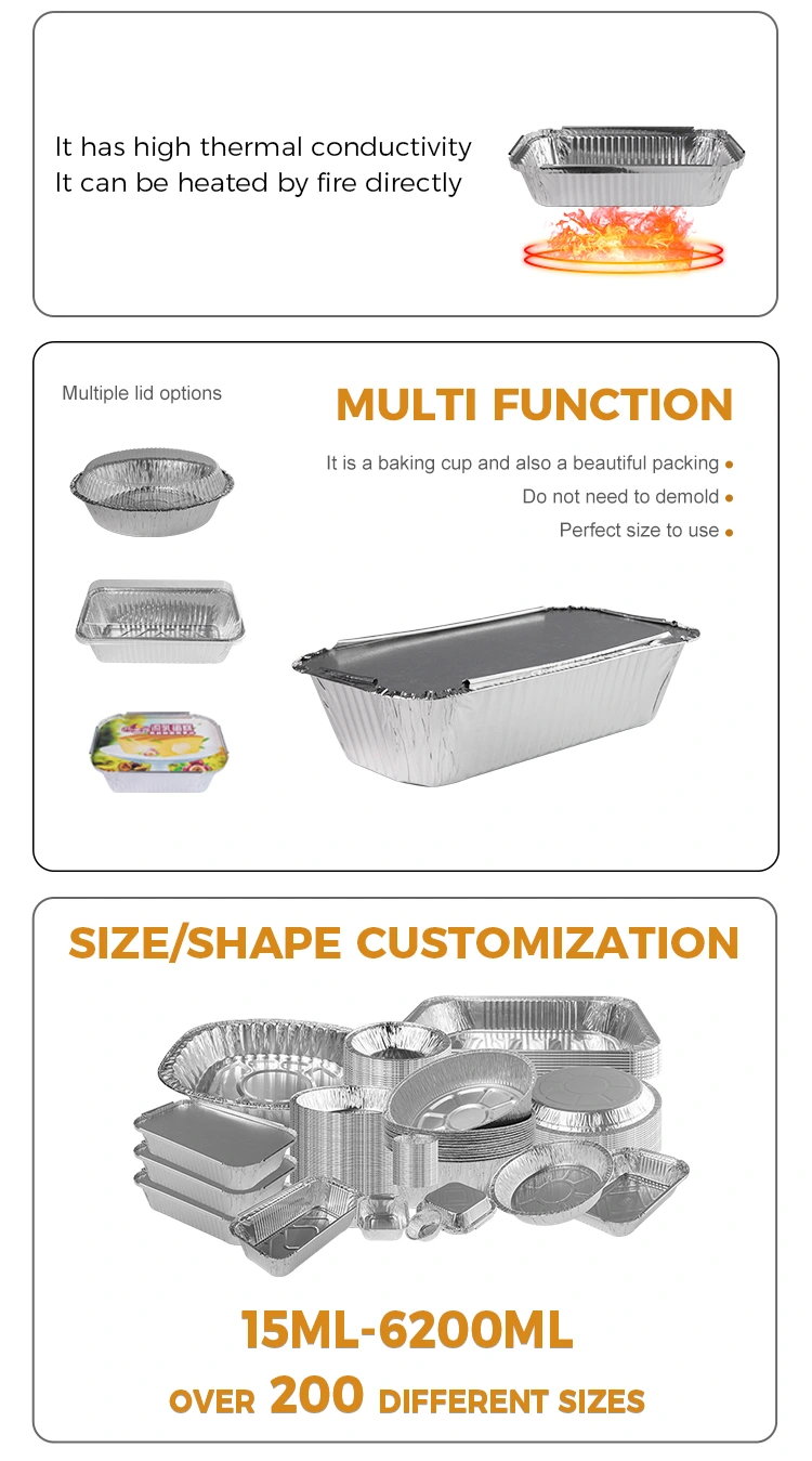 یہ ڈسپوز ایبل فاسٹ فوڈ باکس باربی کیو سلور ایلومینیم ورق کنٹینر اعلی معیار کے 8011 ایلومینیم ورق مواد سے بنا ہے ، جس کا گرمی کا تحفظ اچھا ہے اور کھانے کے درجہ حرارت کو برقرار رکھ سکتا ہے ، جس سے کھانے کو مزیدار اور مزیدار بناتے ہیں۔ اس کے علاوہ ، ہمارا آئتاکار بی بی کیو سلور ایلومینیم ورق کنٹینر بھی تھرمل موصلیت کے فنکشن سے لیس ہے ، جسے ایلومینیم ورق ڑککن یا پی ای ٹی پلاسٹک کے ڑککن کے ساتھ جوڑا بنایا جاسکتا ہے ، جو اپنی مرضی کے مطابق لوگو کے لئے آسان ہے اور برانڈ امیج کو مزید بڑھاتا ہے۔