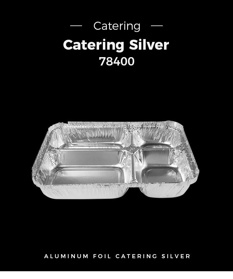 • ڈسپوز ایبل ملٹی کمپارٹمنٹ فاسٹ فوڈ سلور ایلومینیم ورق کنٹینرڈسپوز ایبل ملٹی کمپارٹمنٹ فاسٹ فوڈ سلور ایلومینیم ورق کنٹینر