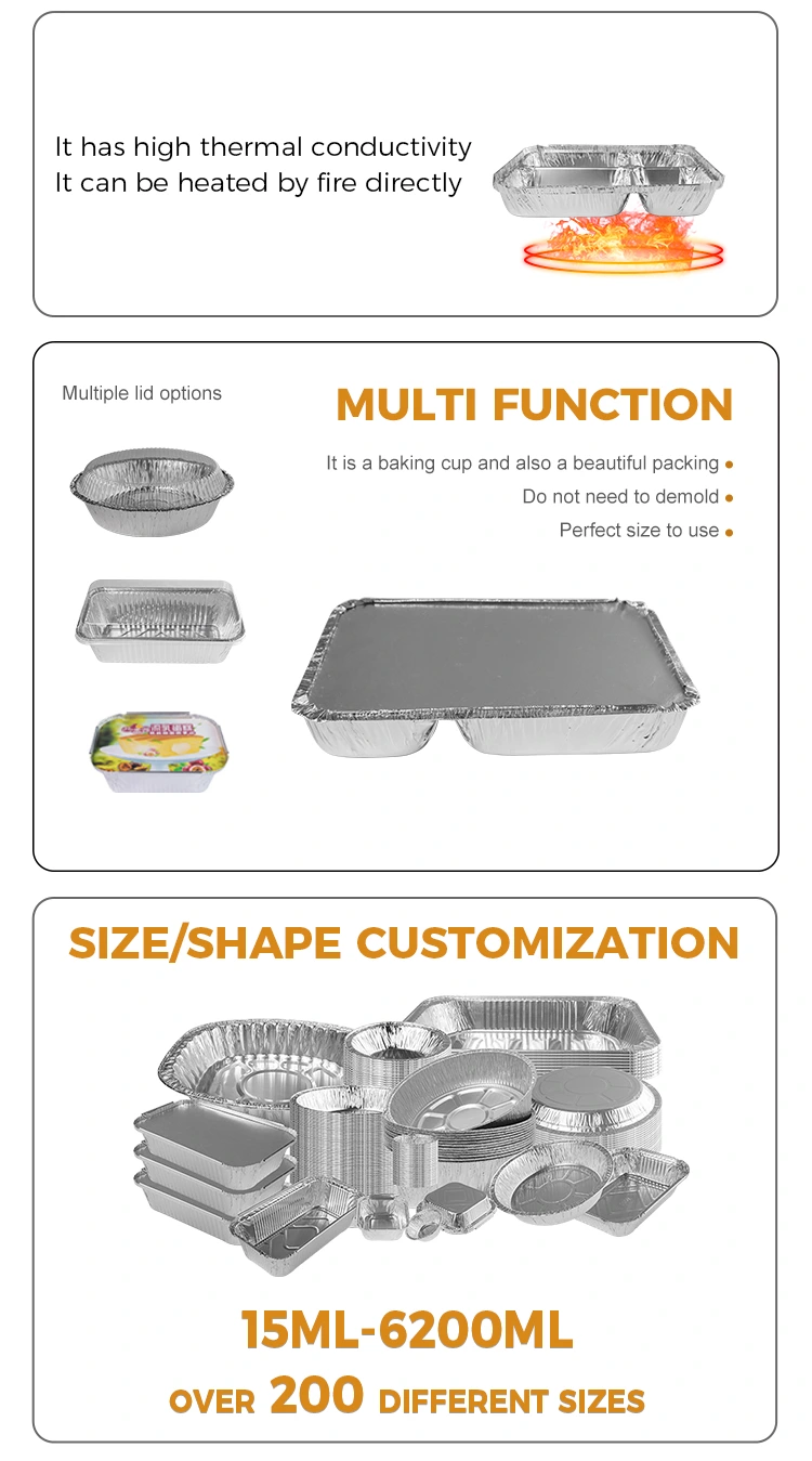 ڈسپوز ایبل ملٹی کمپارٹمنٹ فاسٹ فوڈ سلور ایلومینیم ورق کنٹینر کاغذ کے ڈھکنوں کے ساتھ موسم خزاں اور سردیوں میں ان کی گرمی کو برقرار رکھنے کی اچھی خصوصیات کی وجہ سے اچھی کارکردگی کا مظاہرہ کرتے ہیں۔ چاہے یہ تازہ گرم گرم اسٹو یا دیگر گرم کھانا ہو ، یہ طویل عرصے تک مناسب درجہ حرارت کو برقرار رکھ سکتا ہے ، جس سے صارفین گرم کھانے سے لطف اندوز ہوسکتے ہیں۔