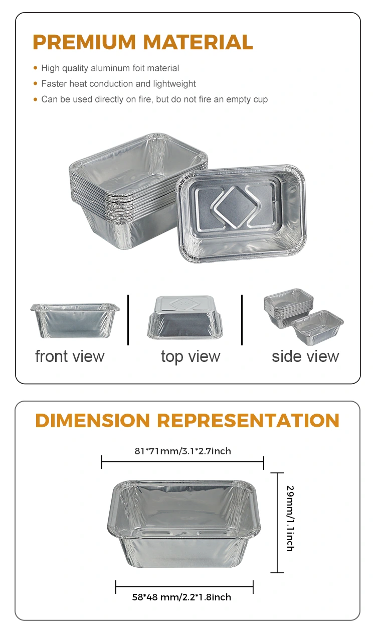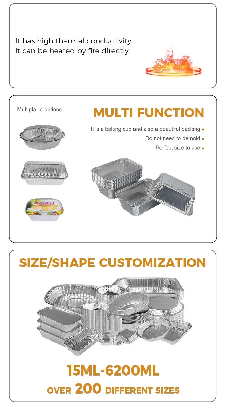 یونچو ایلومینیم فوائل بنانے والے کا ڈسپوزایبل مستطیل بیکنگ ایئر فریئر سلور ایلومینیم فوائل کنٹینر روزانہ گھریلو بیکنگ، ایئر فرائنگ، آؤٹ ڈور کیمپنگ اور ڈنر پارٹیوں کے لیے موزوں ہے اور ایلومینیم فوائل کنٹینرز کے اعلی درجہ حرارت کی مزاحمت کو برقرار رکھتا ہے۔