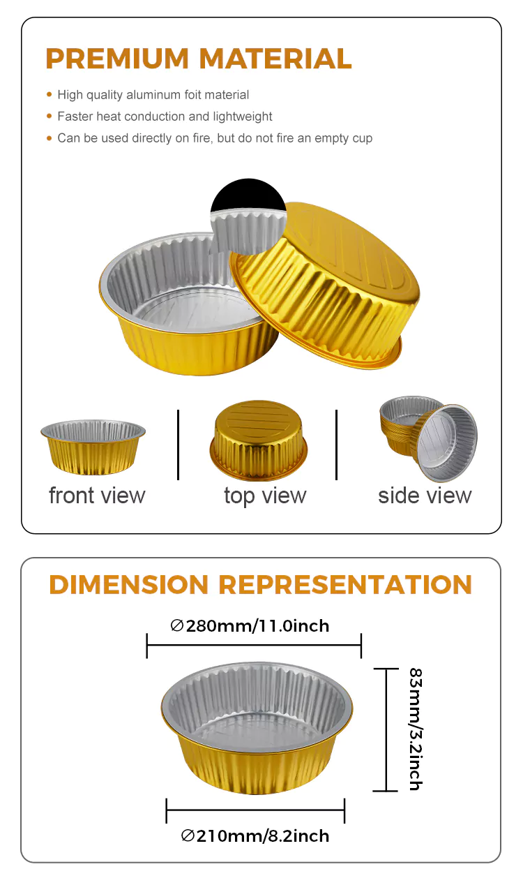 ڈسپوز ایبل گول بڑی صلاحیت سونے کے ایلومینیم ورق کنٹینر