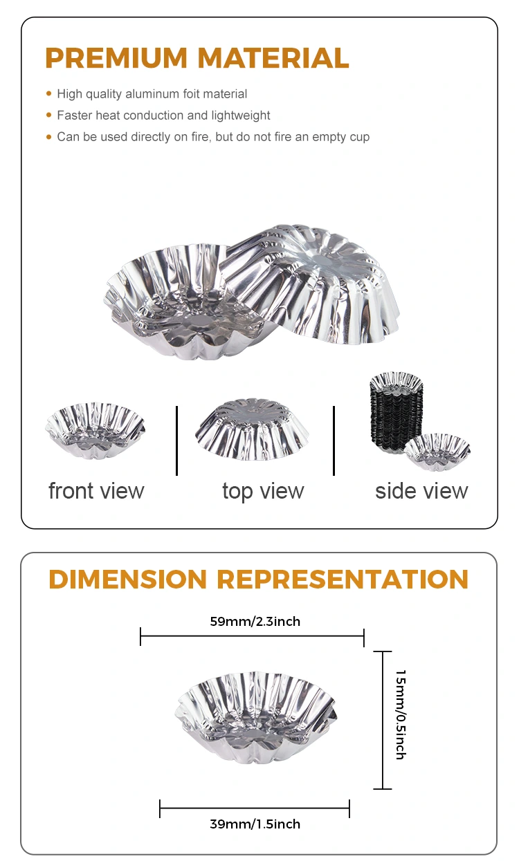 یونچو ایلومینیم ورق انڈے کے ٹارٹس کو ایئر فریئر سلور ایلومینیم ورق فوڈ کنٹینر میں پکایا جاتا ہے