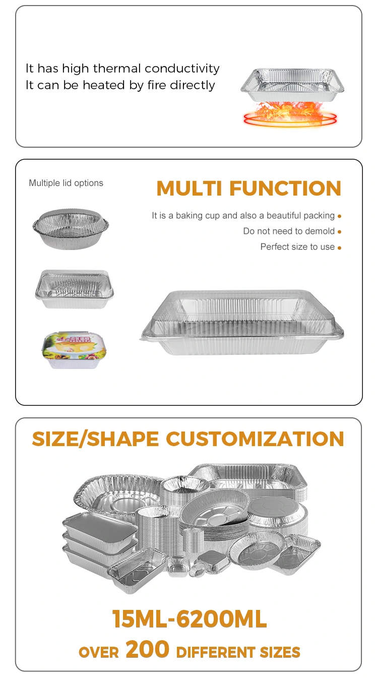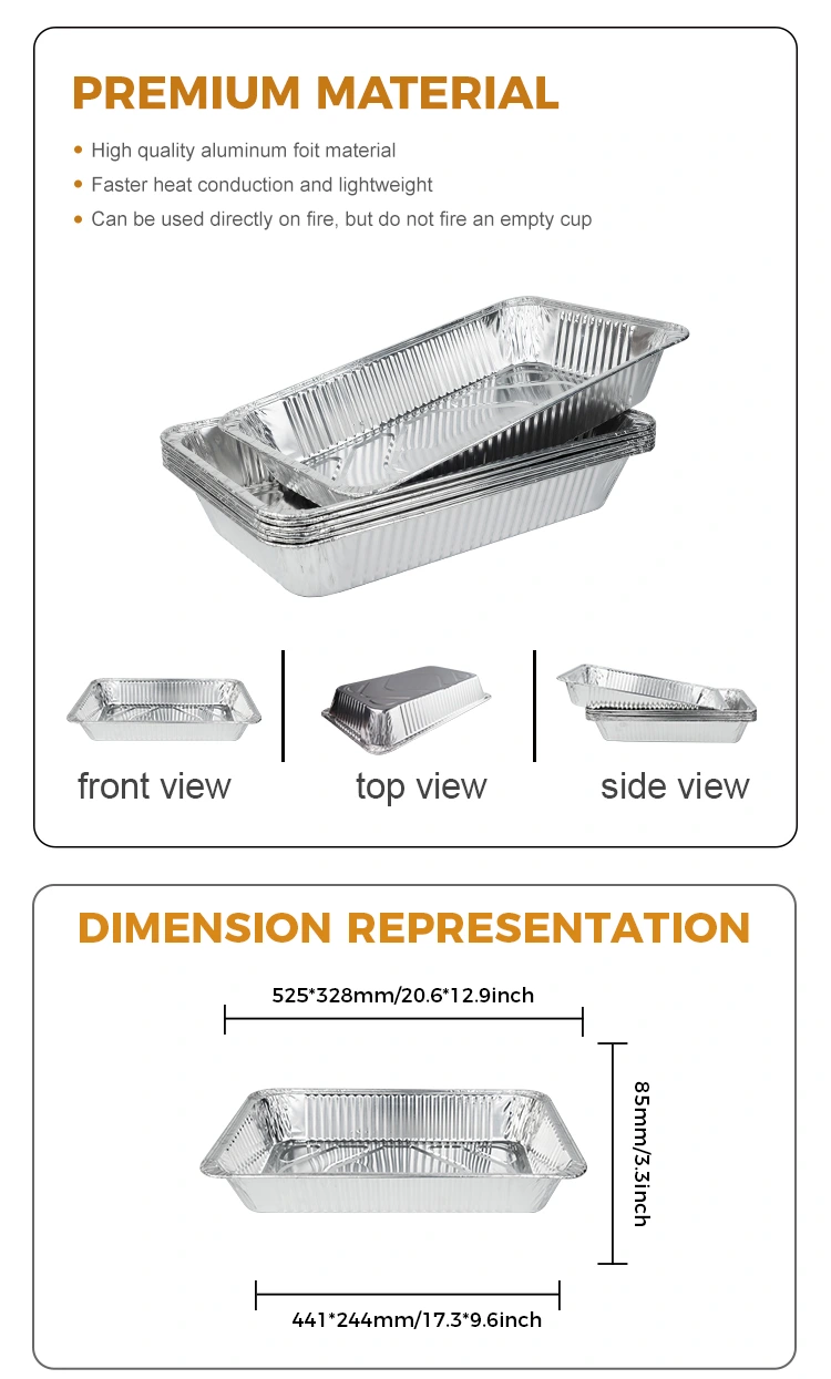 بڑی صلاحیت والے آؤٹ ڈور بیکنگ ٹرے سلور ایلومینیم ورق کنٹینر