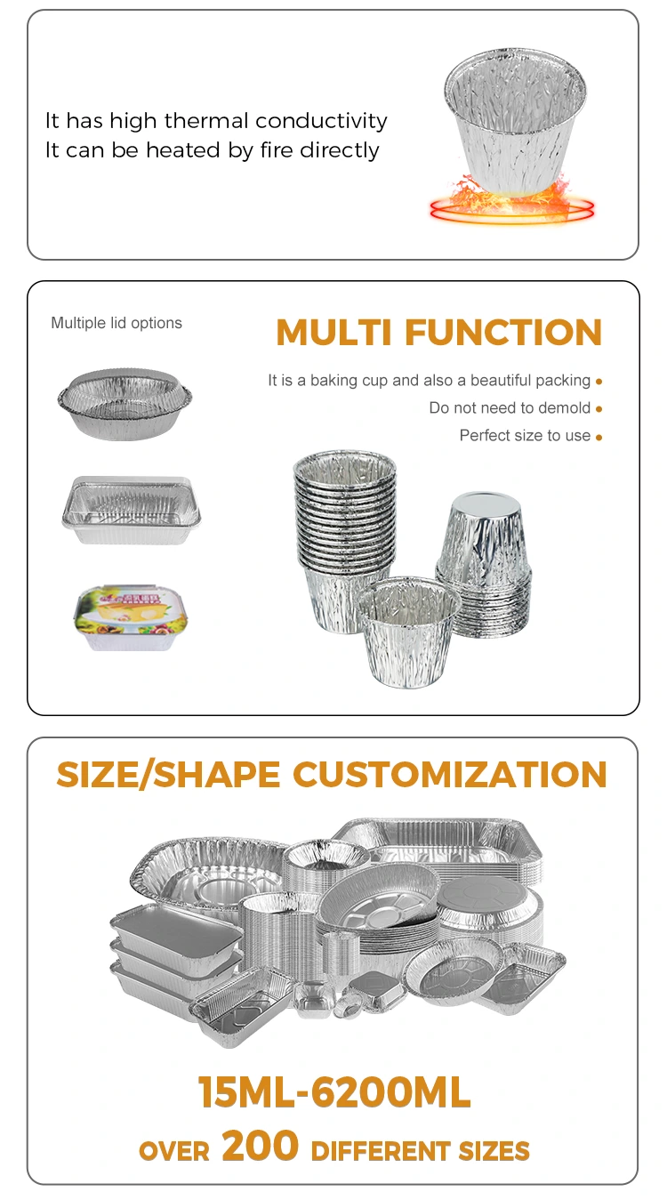 یونچو ایلومینیم ورق سپلائر کی ڈسپوزایبل بیکنگ کیک سلور ایلومینیم ورق کنٹینر متعدد منظرناموں میں استعمال کیا جاسکتا ہے