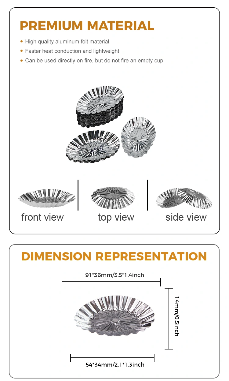 اوول لیس کسٹرڈ ٹارٹ سلور ایلومینیم ورق فوڈ کنٹینر