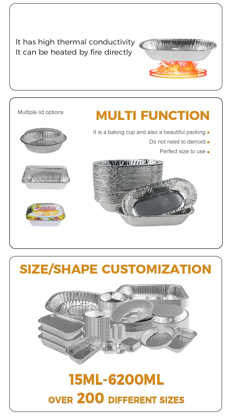 یونچو ایلومینیم ورق انڈاکار روسٹ سلور ایلومینیم ورق فوڈ کنٹینر ایک چھوٹی سی صلاحیت ایلومینیم ورق کنٹینر ہے جو لمبی روٹیوں ، بیکڈ کوکیز ، کیٹرنگ ، صدفوں ، چٹنیوں اور دیگر کھانے پینے کے لئے ڈیزائن کیا گیا ہے۔ نہ صرف یہ پیکیجنگ چٹنی ، ڈپس ، چھوٹے مصالحہ جات اور بیکنگ کے نمونے کے ل suitable موزوں ہے ، بلکہ یہ چٹنیوں کو ظاہر کرنے اور بھیجنے کے لئے خاص طور پر بھی موزوں ہے۔ کنٹینر فوڈ گریڈ ایلومینیم ورق مواد سے بنا ہوا ہے ، جس میں ایک ٹکڑے میں ڈھال لیا گیا ہے ، جس میں آئینے کی طرح ہموار دیوار ہے ، جو خوبصورت اور عملی دونوں ہے ، جو پیکیجنگ کی مجموعی ساخت کو نمایاں طور پر بڑھا سکتی ہے ، خاص طور پر ان فوڈ سروس کے منظرناموں کے لئے موزوں ہے جو تفصیل اور خدمت کے معیار پر توجہ دیتے ہیں۔