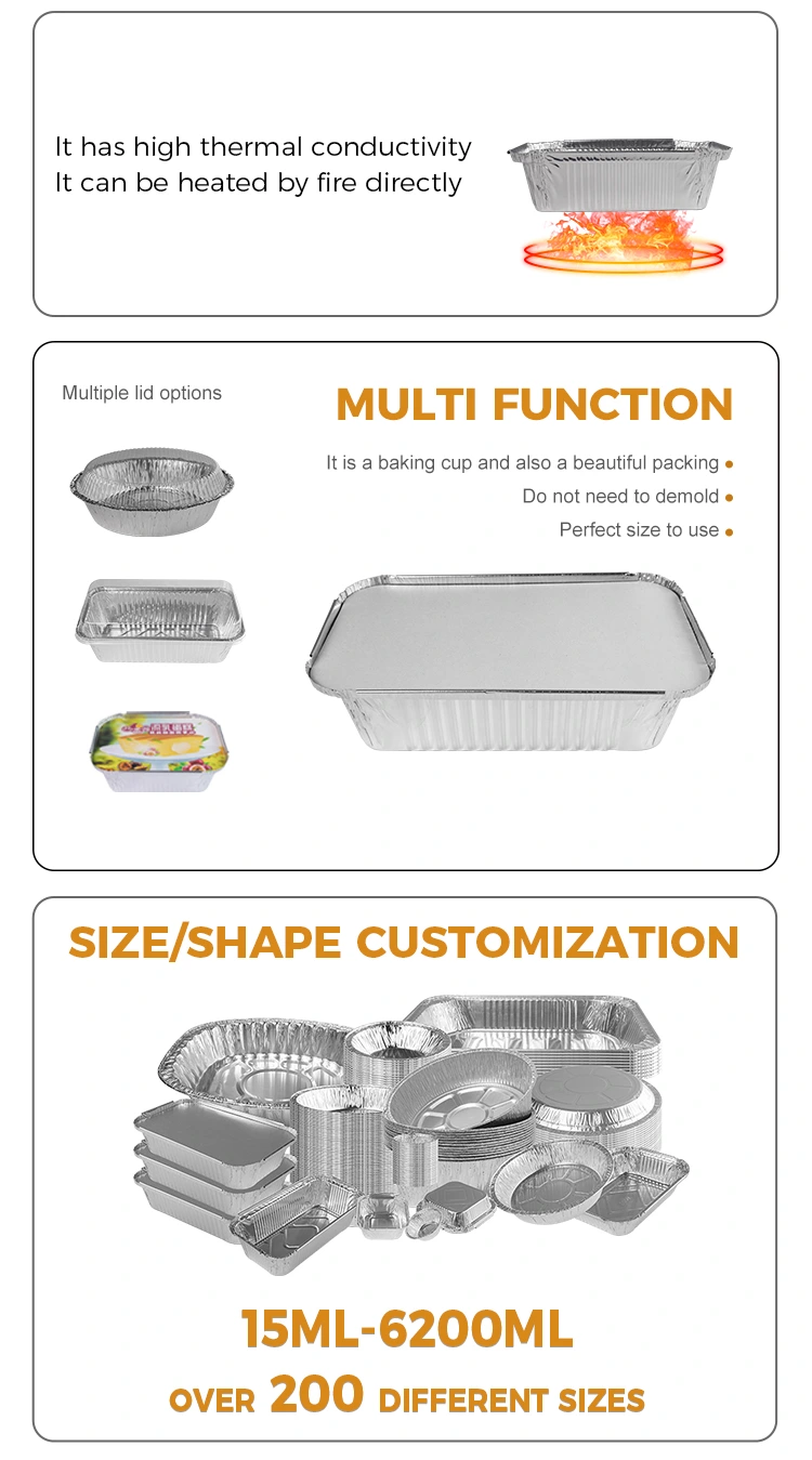 یونچو ایلومینیم ورق سپلائر نہ صرف آئتاکار ایئر فریئر پیکنگ سلور ایلومینیم ورق کنٹینرز فراہم کرتا ہے ، بلکہ مارکیٹ کی مختلف ضروریات کو پورا کرنے کے لئے متعدد دیگر پیکیجنگ مصنوعات کو بھی لانچ کرتا ہے۔ مثال کے طور پر ، وہ گول چاندی کے ایلومینیم ورق کنٹینر بھی پیش کرتے ہیں ، جنہوں نے اپنے منفرد گول ڈیزائن اور جدید رابطے سے مارکیٹ جیت لی ہے۔ اس کے علاوہ ، یونچو سپلائرز نے مختلف سائز اور شکلوں میں ایلومینیم ورق کنٹینرز کا ایک سلسلہ بھی شروع کیا ہے تاکہ کیٹرنگ کے مختلف منظرناموں اور ذاتی ضروریات کے مطابق ہو۔