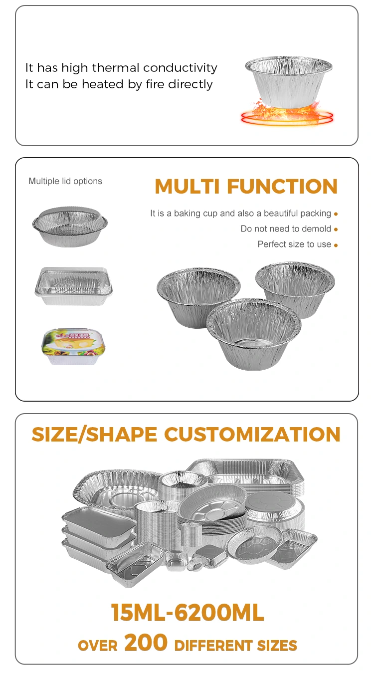 کنٹینر کو اس کے آس پاس ایک خوش شکل کی شکل کے ساتھ ڈیزائن کیا گیا ہے ، جس سے کنٹینر کے جمالیات کو لینے اور اس میں اضافہ کرنا آسان ہوجاتا ہے۔ چاہے وہ بیکنگ کیک ، روٹی ، یا دیگر پیسٹری ہو ، یہ ورق کنٹینر آپ کو کامل تحفظ اور سہولت فراہم کرتا ہے۔
