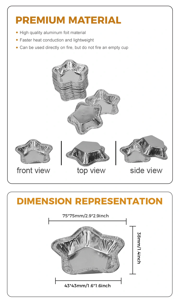 بیکنگ ایلومینیم ورق کھانے کے کنٹینر کے لئے اسٹار کے سائز کا ایلومینیم ورق ٹارٹ کپ